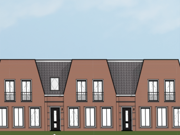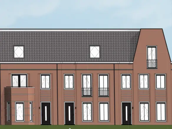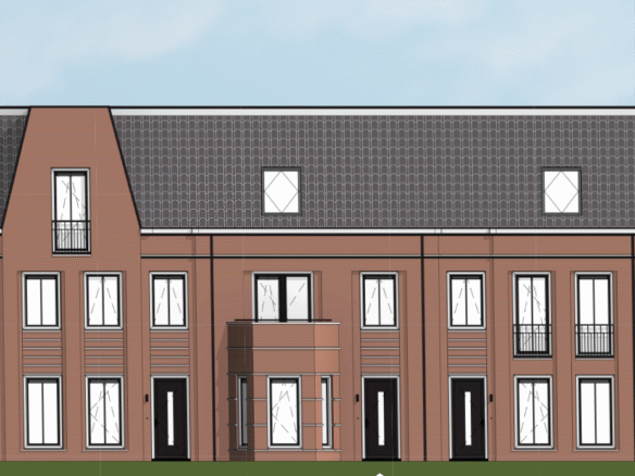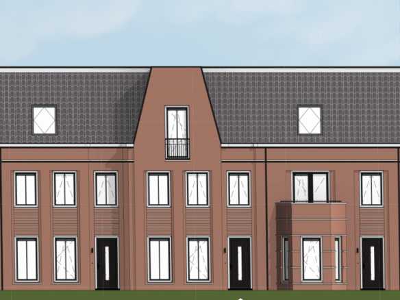 -:Hier trekt de gevel zich een klein beetje terug. De woning straalt al door de rijke architectuur. Maar net zo makkelijk geef je er je eigen draai aan.